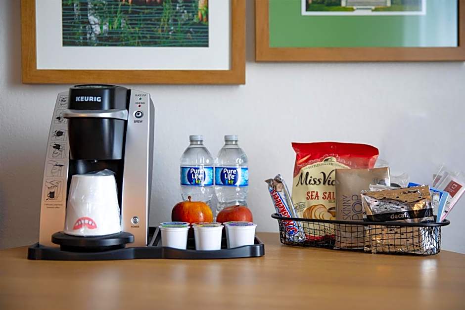Features a flat-screen LCD TV, coffee maker, microwave, mini-refrigerator and free high-speed internet access.